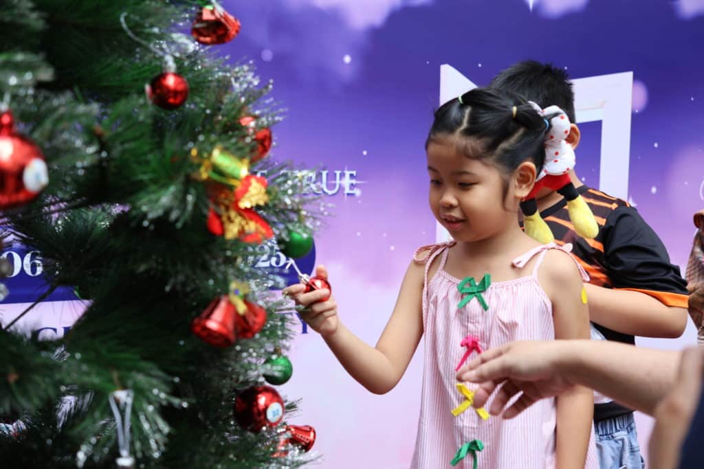 Các em được tự tay trải nghiệm làm hamburger, kem và sữa mứt dâu, tham gia các trò chơi tương tác, nhận những phần quà được chuẩn bị chu đáo theo “điều ước” của các em đã gửi về chương trình, và lưu giữ kỷ niệm qua những bức ảnh chụp cùng nhà tài trợ bên cây thông Noel rực rỡ sắc màu.
