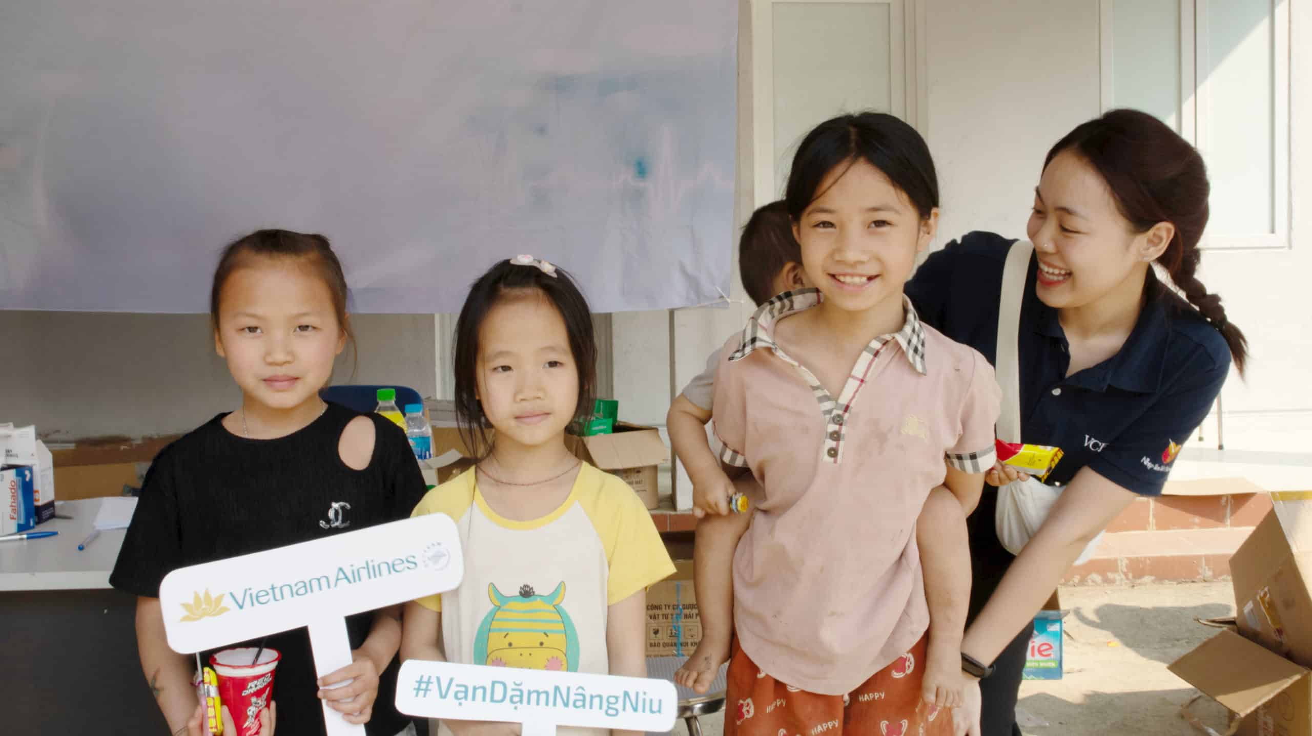 Đặc biệt, Vietnam Airlines – Đơn vị bảo trợ vận chuyển chính – đã đồng hành cùng đội ngũ dự án di chuyển an toàn đến các vùng núi xa xôi, mang yêu thương và sự hỗ trợ kịp thời đến với người dân sau thiên tai.